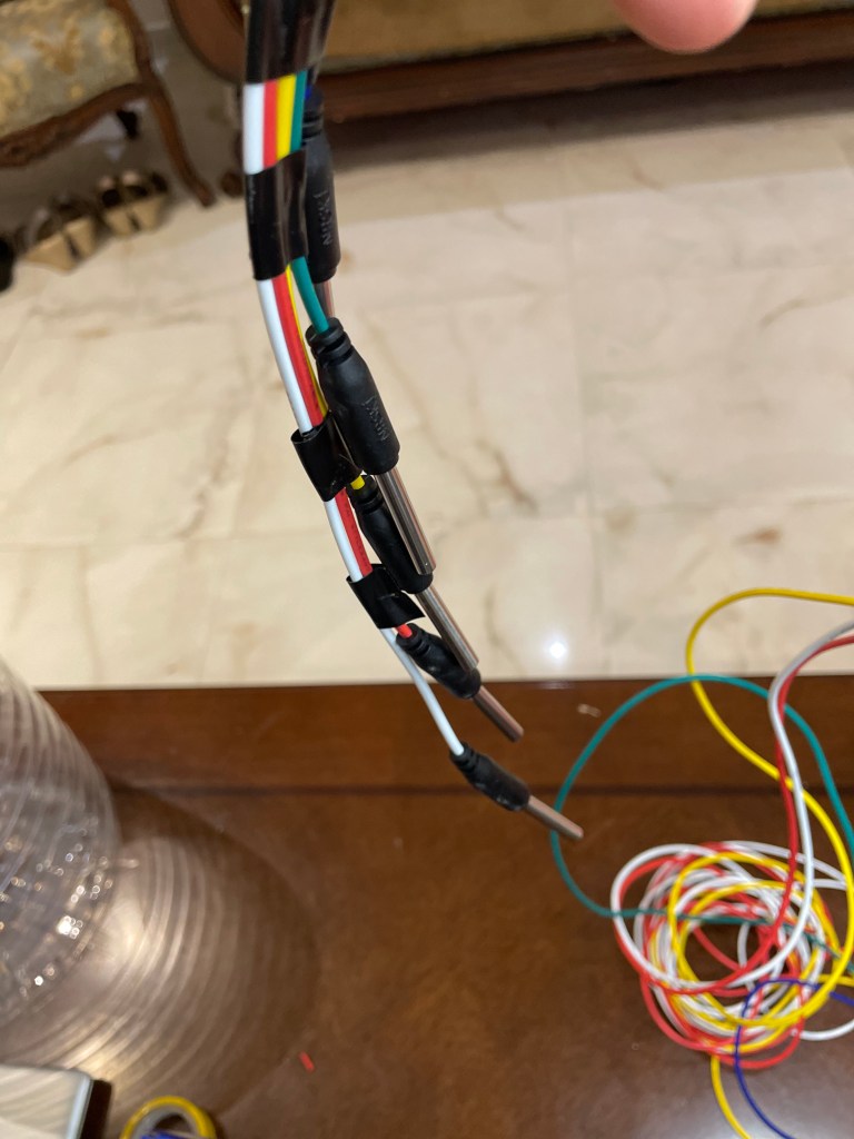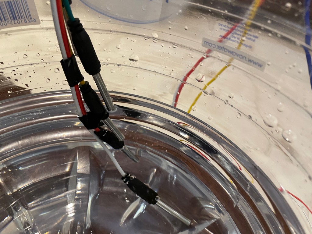 هنا قمنا بتجهيز خزان صغير لعمل التجربة وقد تم وض الحساسات في الخزان وهو فارغ وقمنا بتعبئة الخزان بشكل تدريجي.